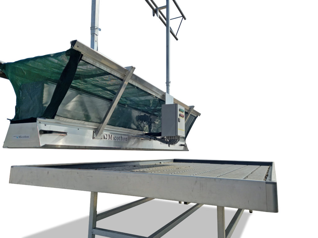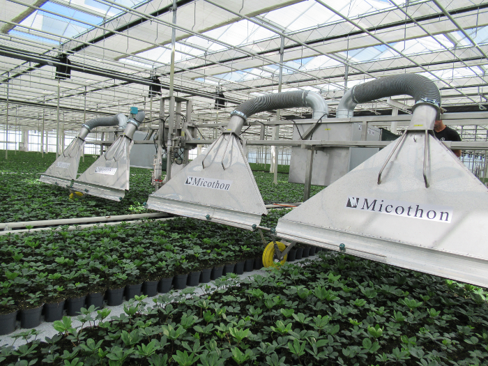A Micothon spraying cart was converted to an extractor with four hoods and fans which can cover four flowerbeds with a total width of 8 meter.